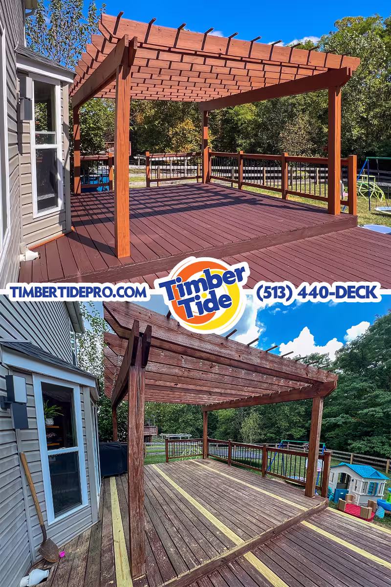 A fresh coat of SuperDeck not only looks incredible but also seals and protects the wood through Ohio’s changing seasons. When winter passes, the homeowners will only need a quick rinse before it’s ready for another season of cookouts, sunsets, and summer evenings under the pergola.